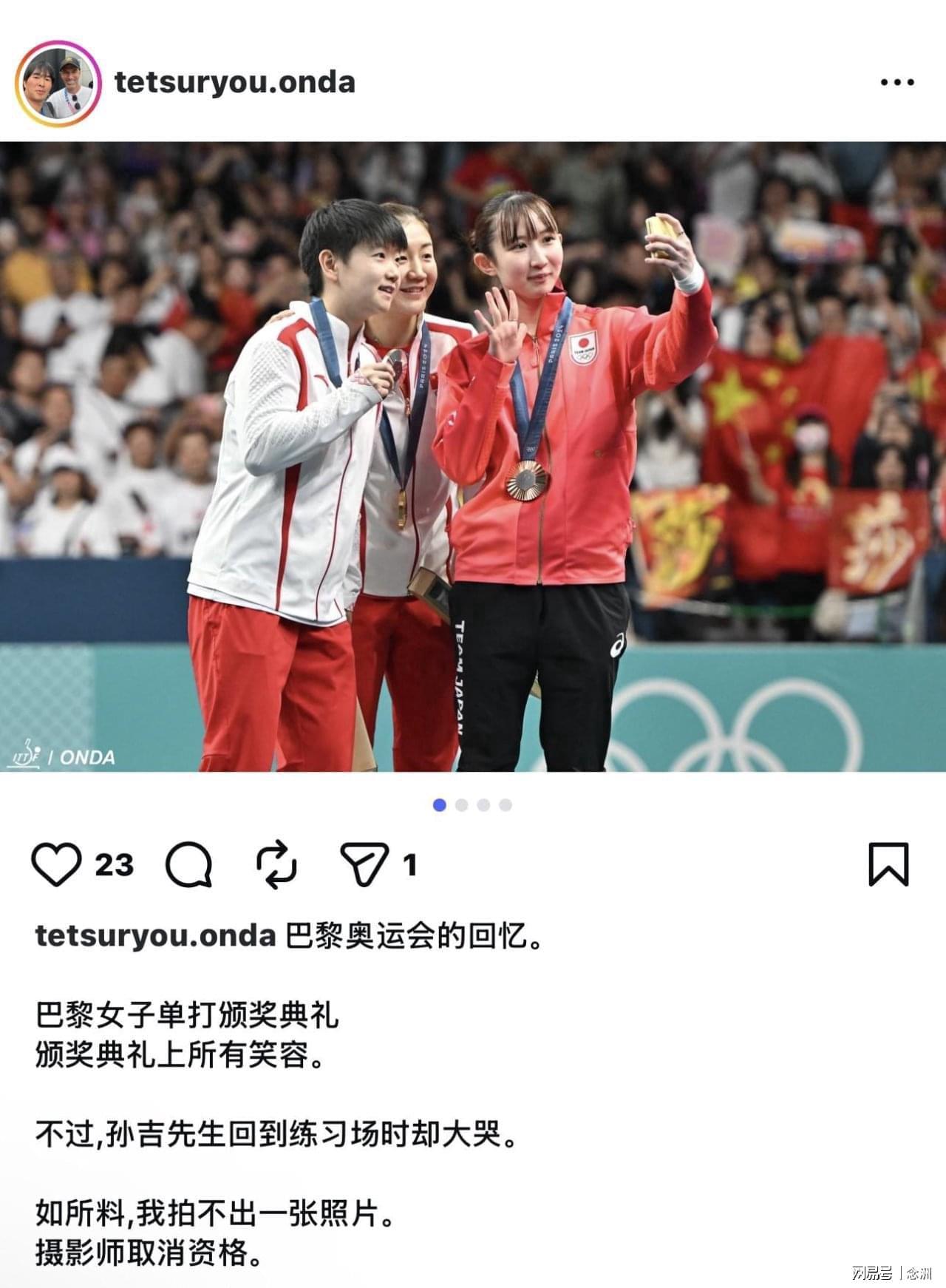 日本记者温田哲亮在回忆巴黎奥运会时表示,孙颖莎、陈梦和铜牌得主早田希娜在颁奖仪式的领奖台上都露出了灿烂的笑容,从孙颖莎当时的表情来看,丝毫看不出输给陈梦之后的伤心难过。