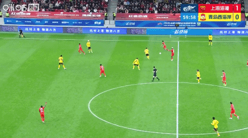 青岛西海岸打入挽回颜面的一个进球。
