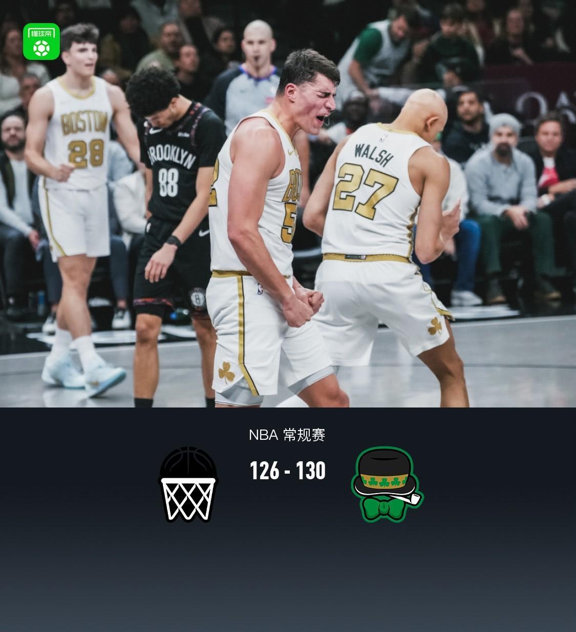加时赛篮网小波特拿下8分,凯尔特人普里查德拿下8分,最终篮网126-130不敌凯尔特人